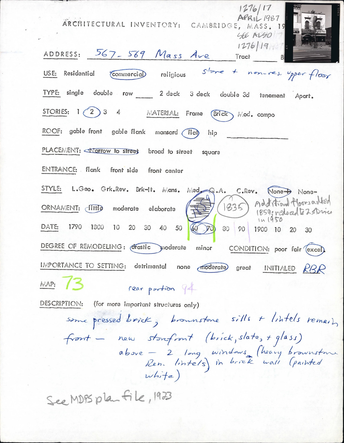567-569 Massachusetts Ave - Architectural Inventory Form