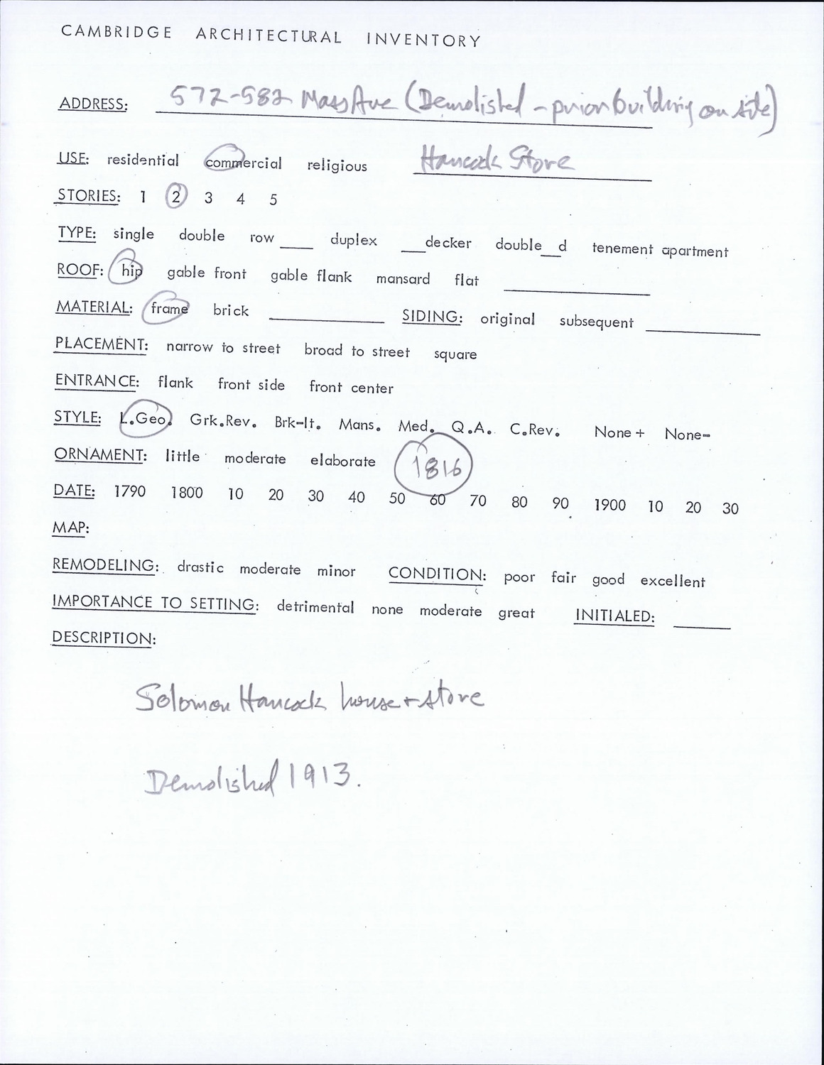 572-582 Massachusetts Ave - Architectural Inventory Form
