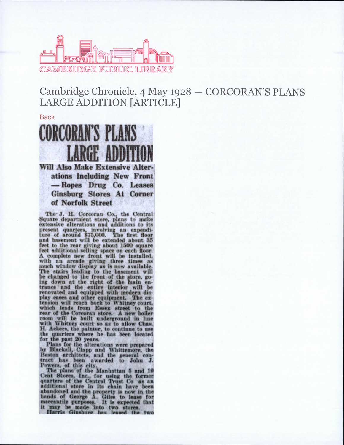 - Cambridge Historical Commission, Digital Architectural Survey and History.