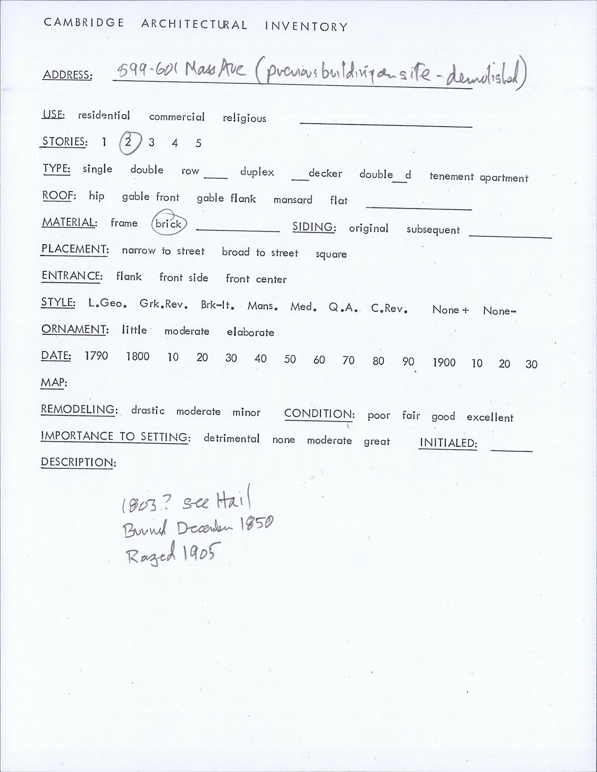 599-601 Massachusetts Ave - Architectural Inventory Form