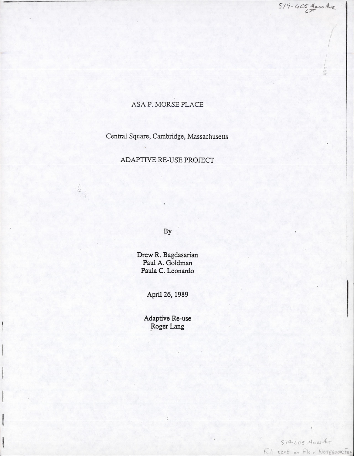- Cambridge Historical Commission, Digital Architectural Survey and History.