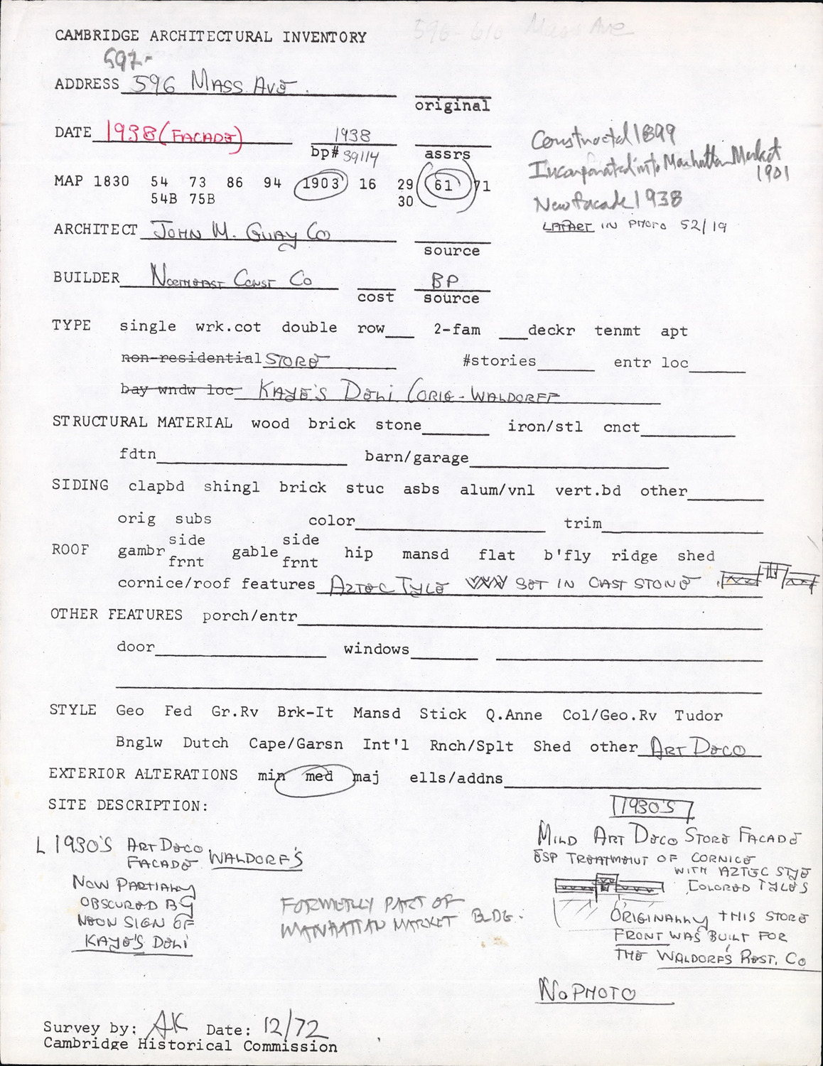 592-596 Massachusetts Ave - Architectural Inventory Form