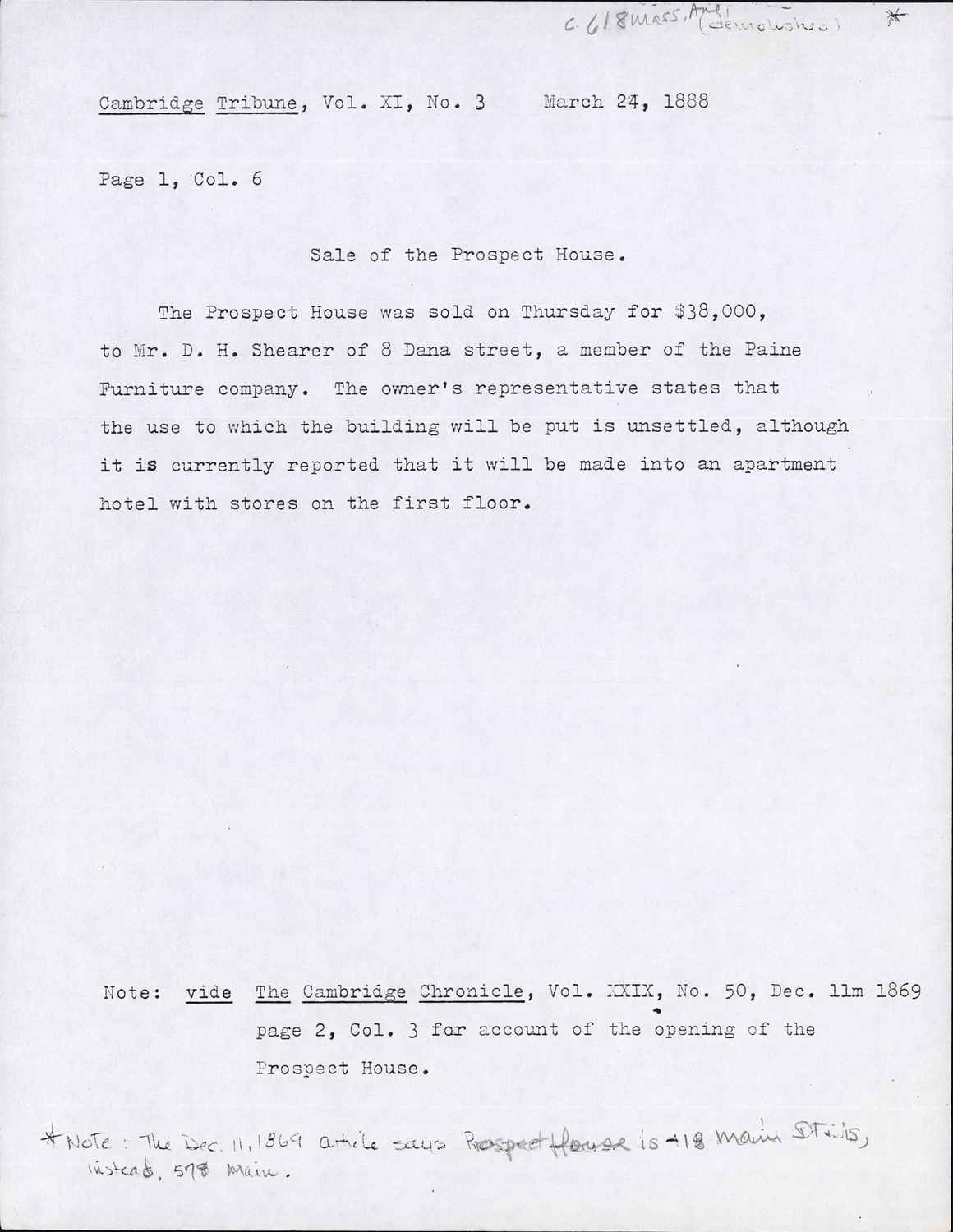 - Cambridge Historical Commission, Digital Architectural Survey and History.