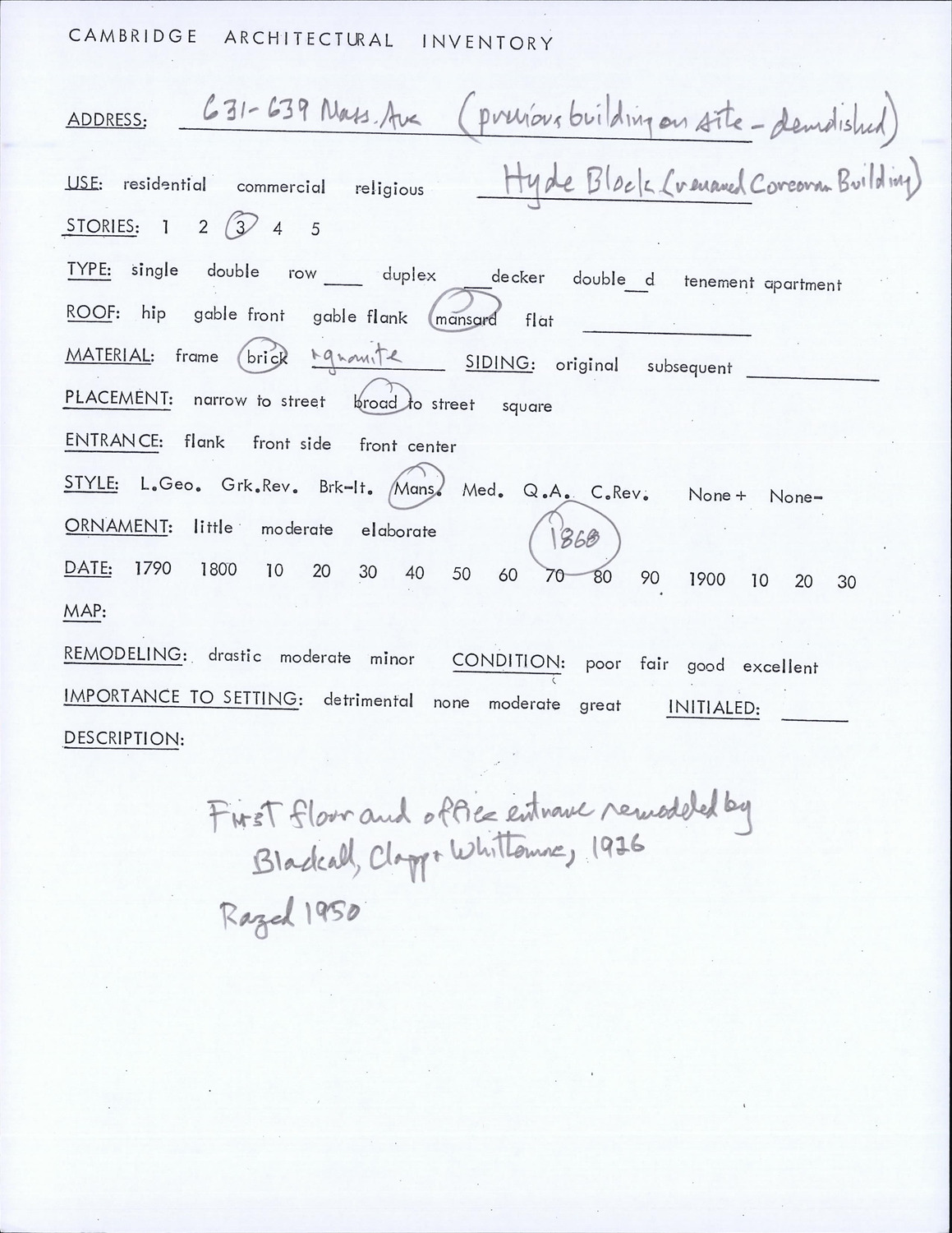 631-639 Massachusetts Ave - Architectural Inventory Form