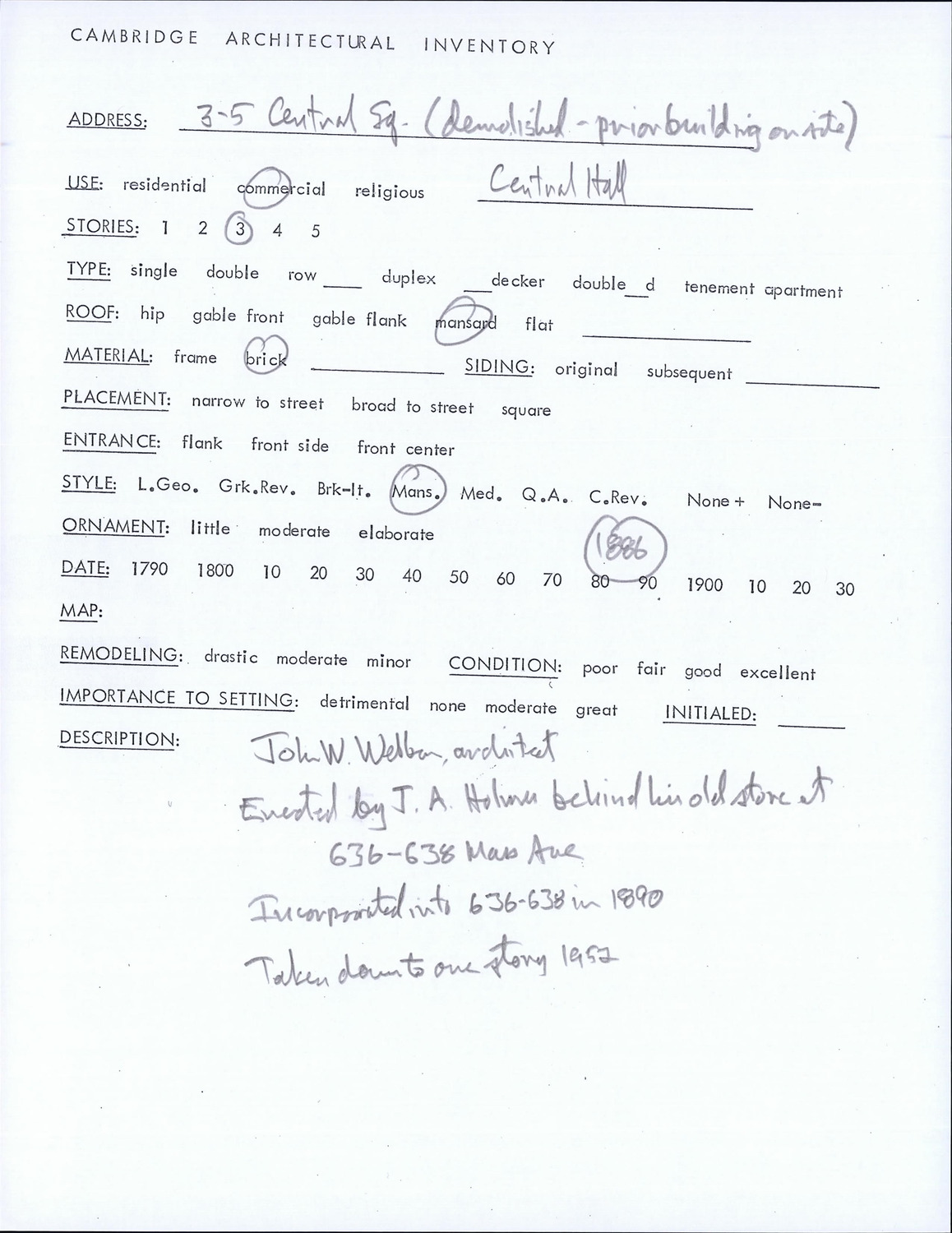 - Cambridge Historical Commission, Digital Architectural Survey and History.