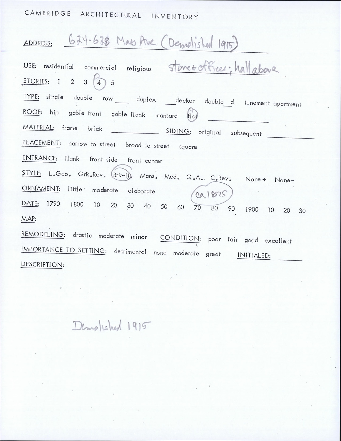 624-628 Massachusetts Ave - Architectural Inventory Form