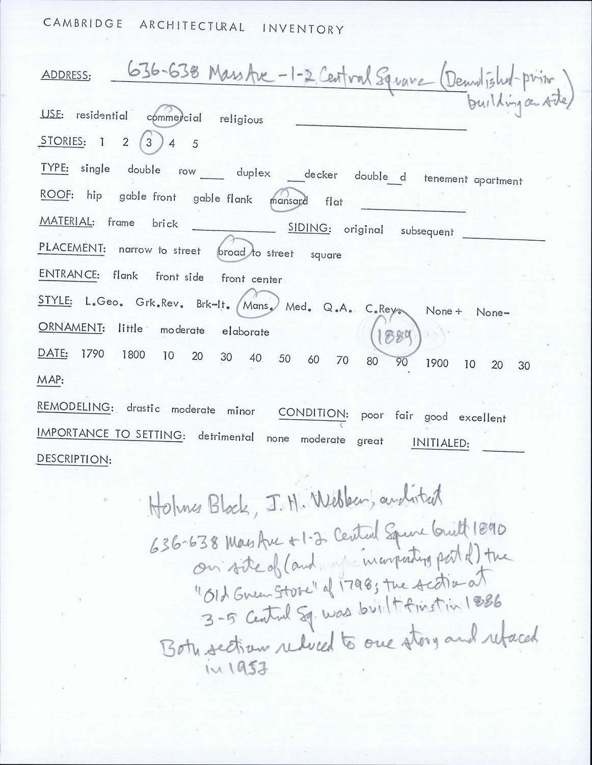 636-638 Massachusetts Ave - Architectural Inventory Form