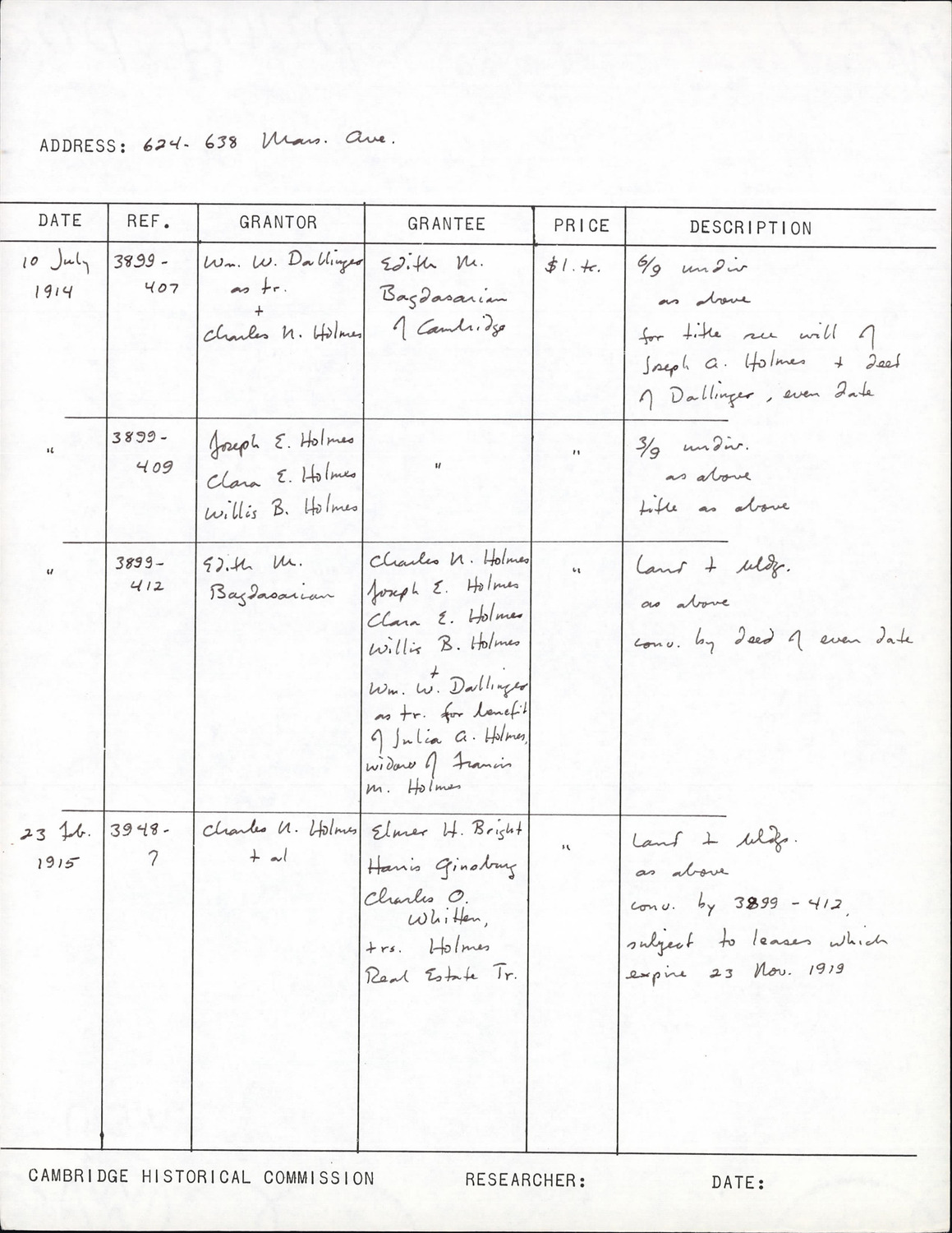 - Cambridge Historical Commission, Digital Architectural Survey and History.