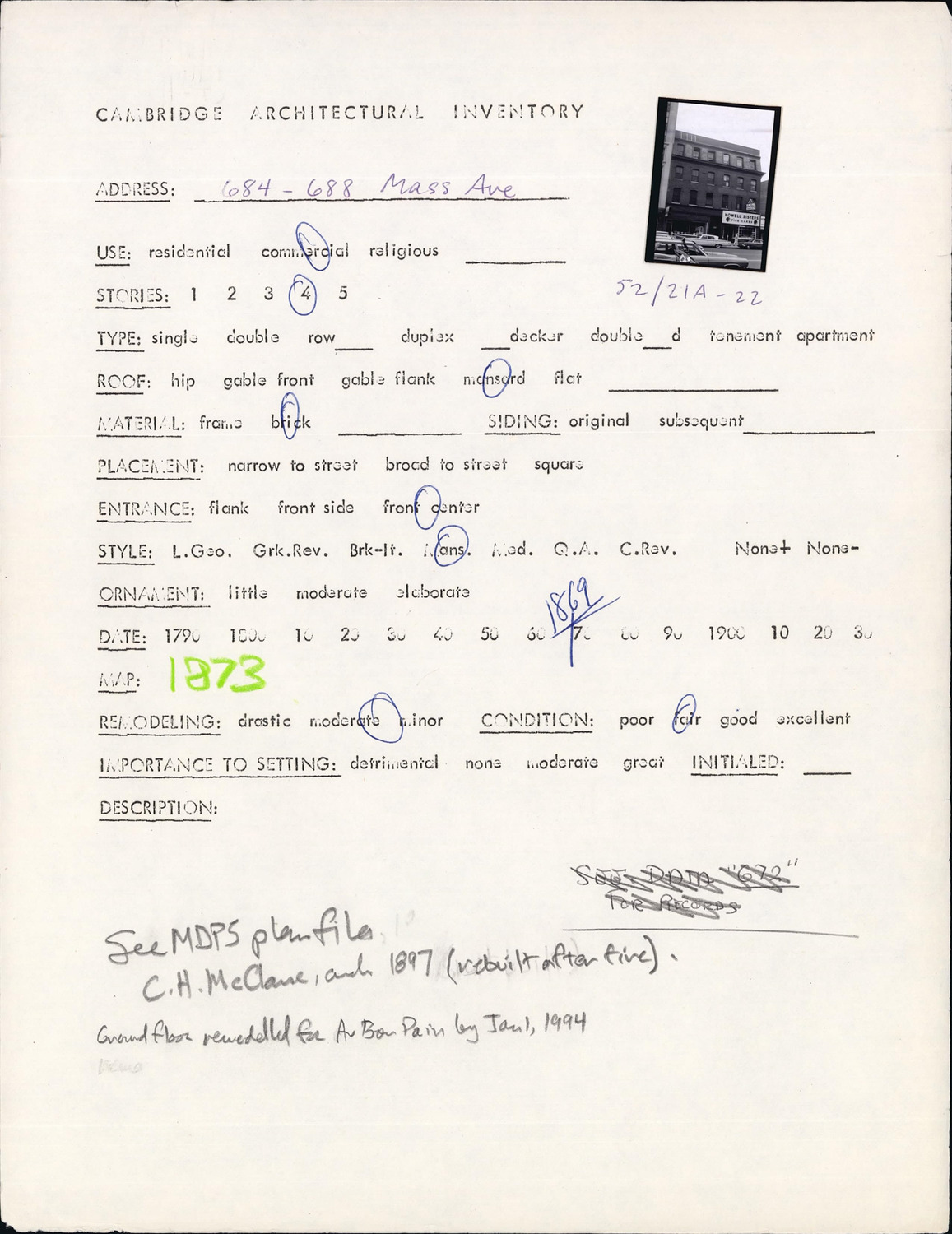 684-688 Massachusetts Ave - Architectural Inventory Form