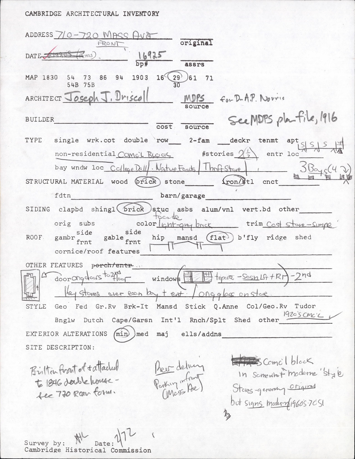 710-720 Massachusetts Ave - Architectural Inventory Form