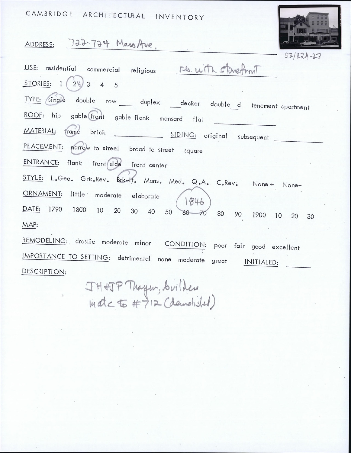 722-724 Massachusetts Ave - Architectural Inventory Form