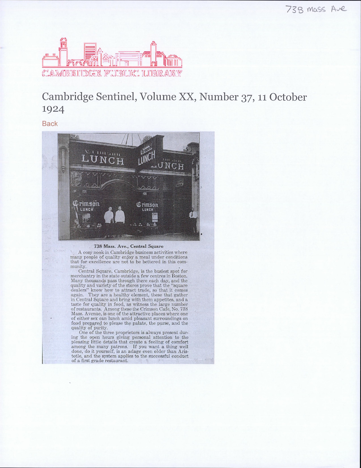 - Cambridge Historical Commission, Digital Architectural Survey and History.
