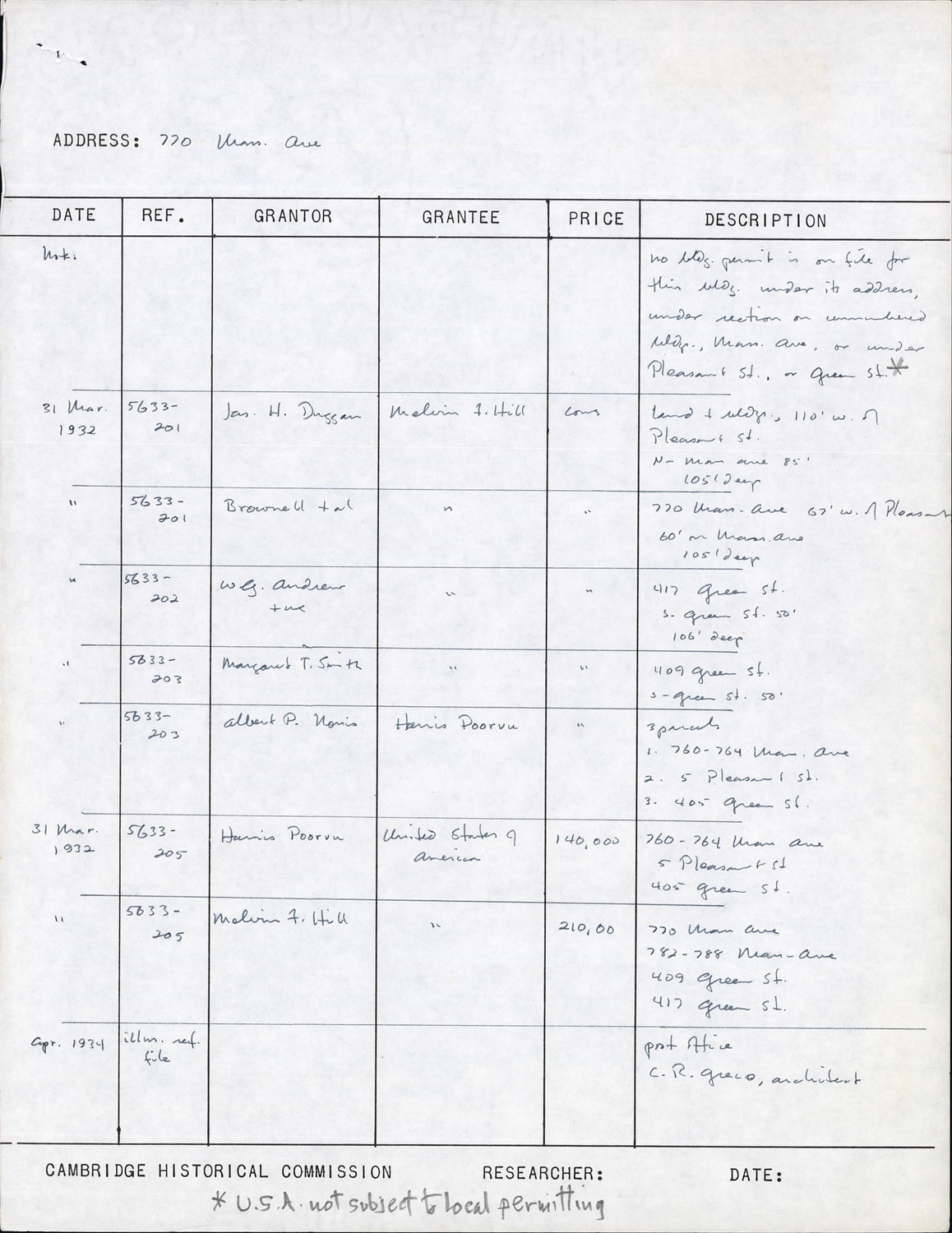 - Cambridge Historical Commission, Digital Architectural Survey and History.