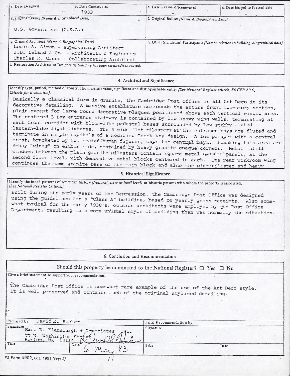 - Cambridge Historical Commission, Digital Architectural Survey and History.