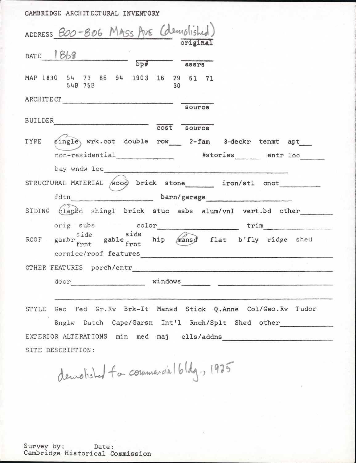 800-806 Massachusetts Ave - Architectural Inventory Form