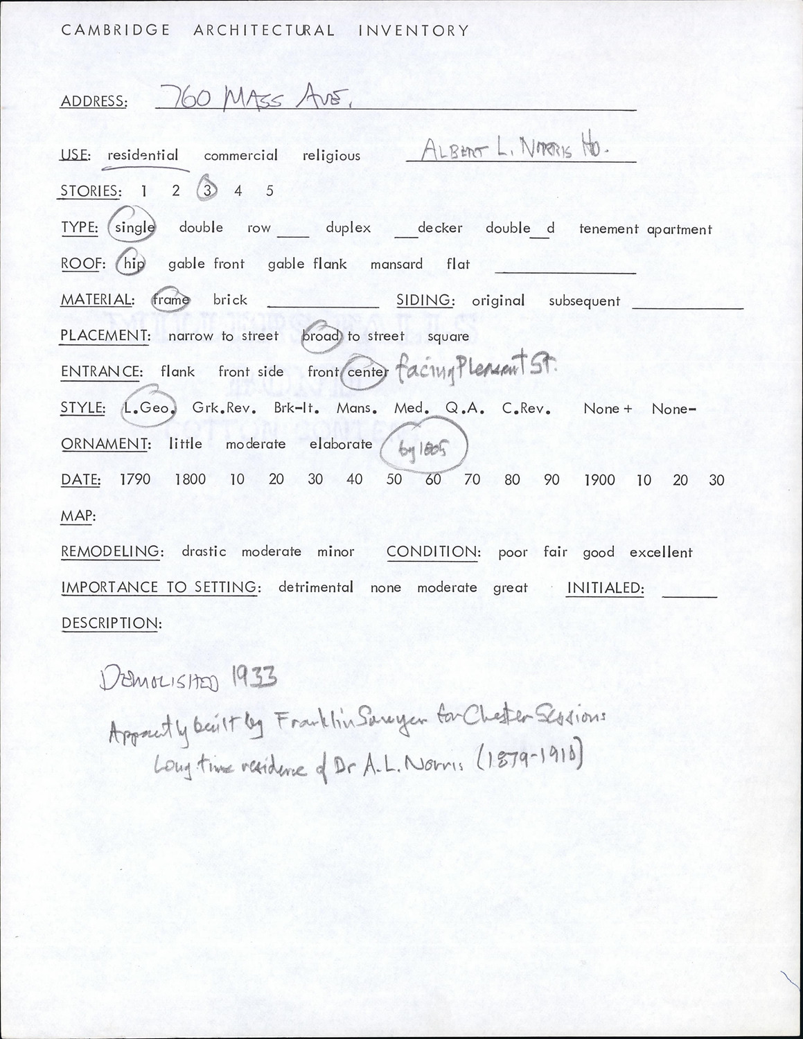 760 Massachusetts Ave - Architectural Inventory Form