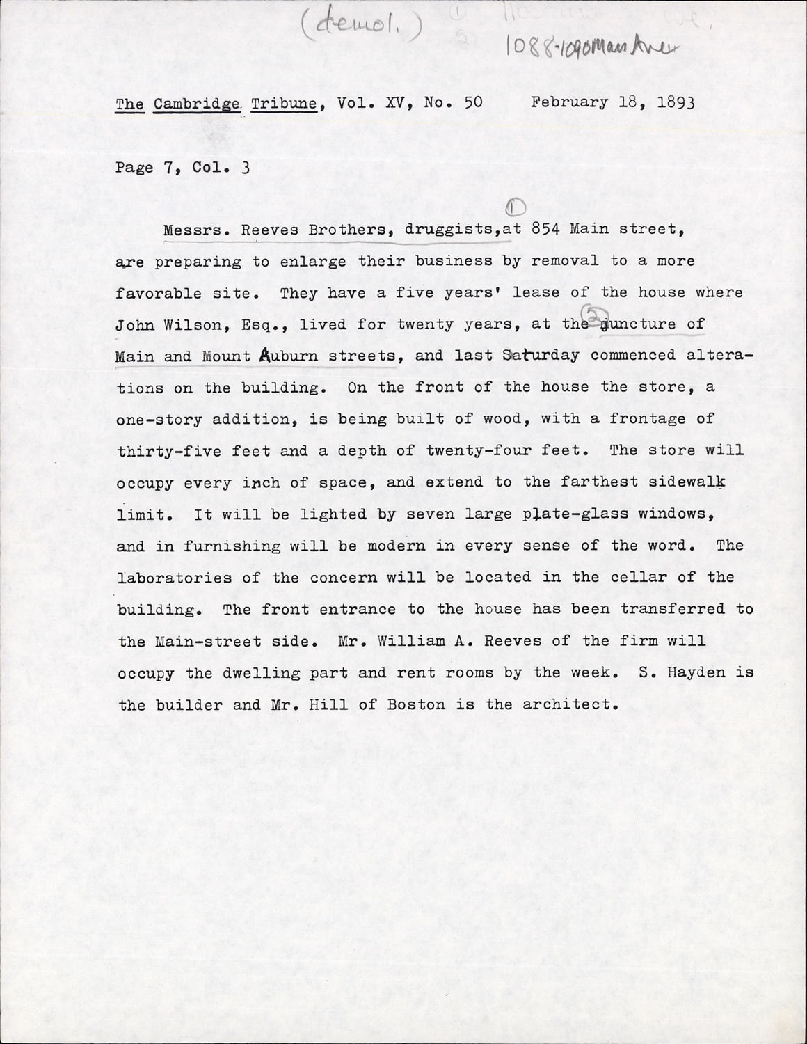 - Cambridge Historical Commission, Digital Architectural Survey and History.
