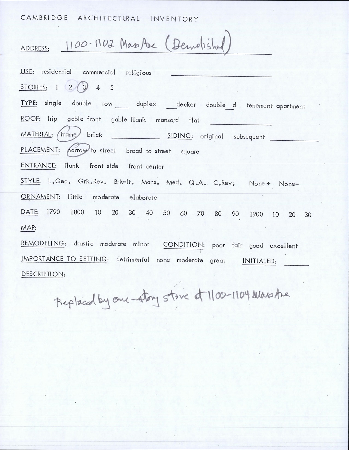 1100-1104 Massachusetts Ave - Architectural Inventory Form