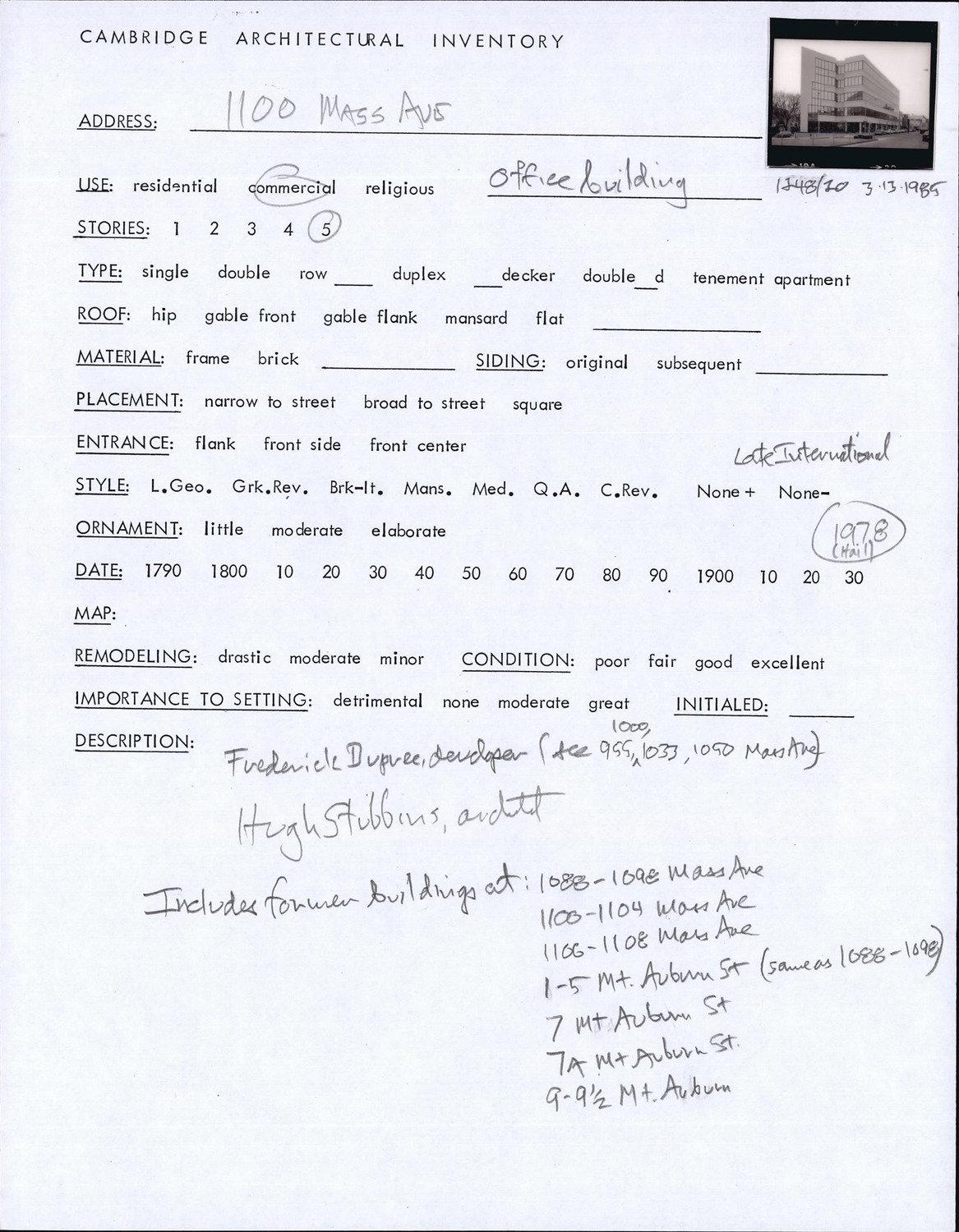 - Cambridge Historical Commission, Digital Architectural Survey and History.