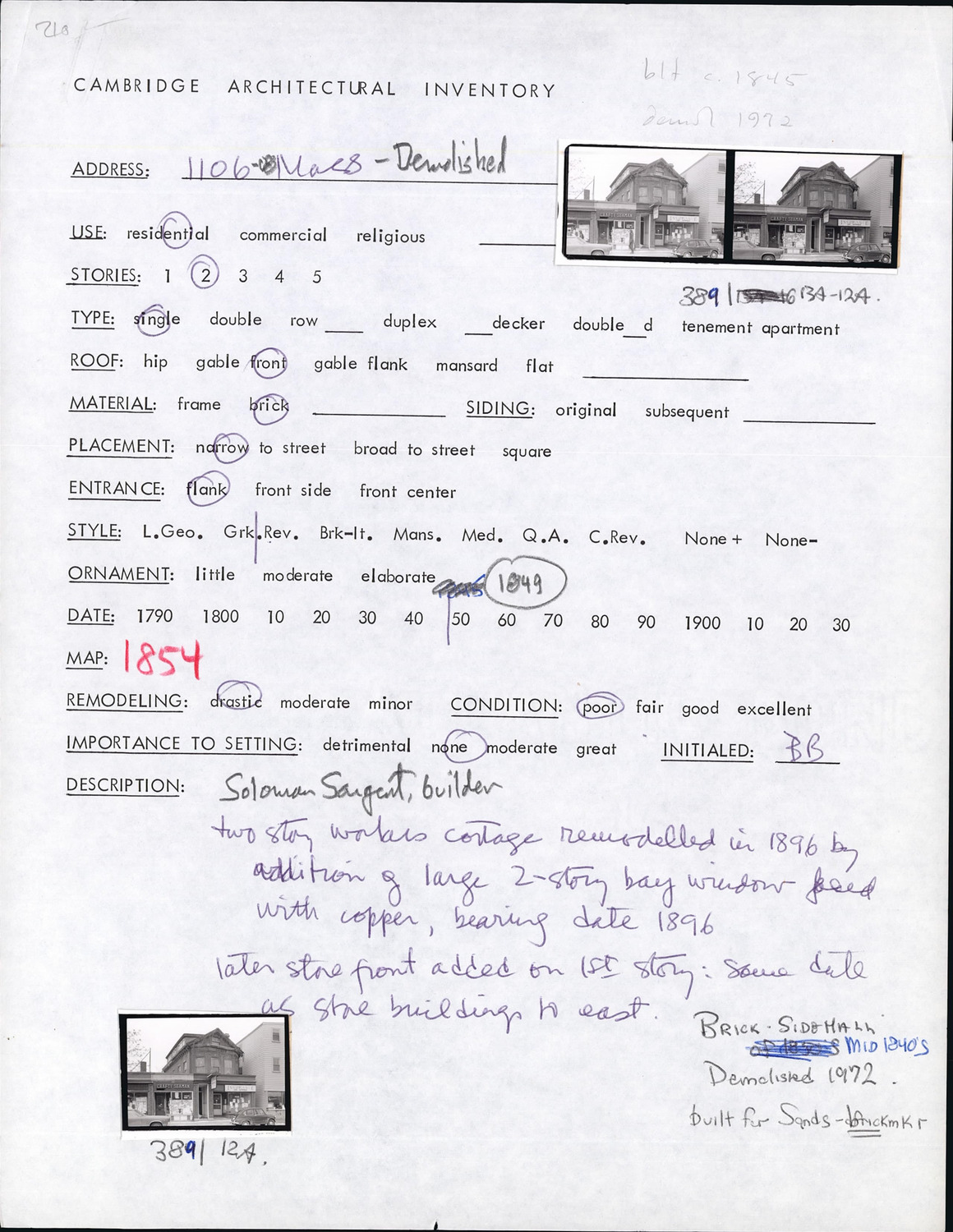 1106-1108 Massachusetts Ave - Architectural Inventory Form