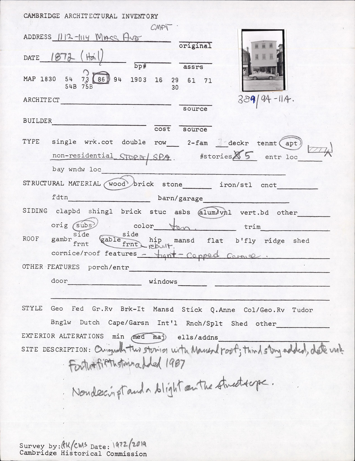 1112-1114 Massachusetts Ave - Architectural Inventory Form