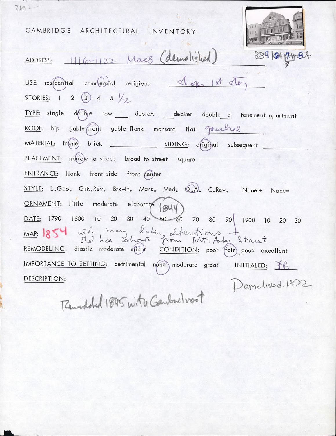 1116-1122 Massachusetts Ave - Architectural Inventory Form