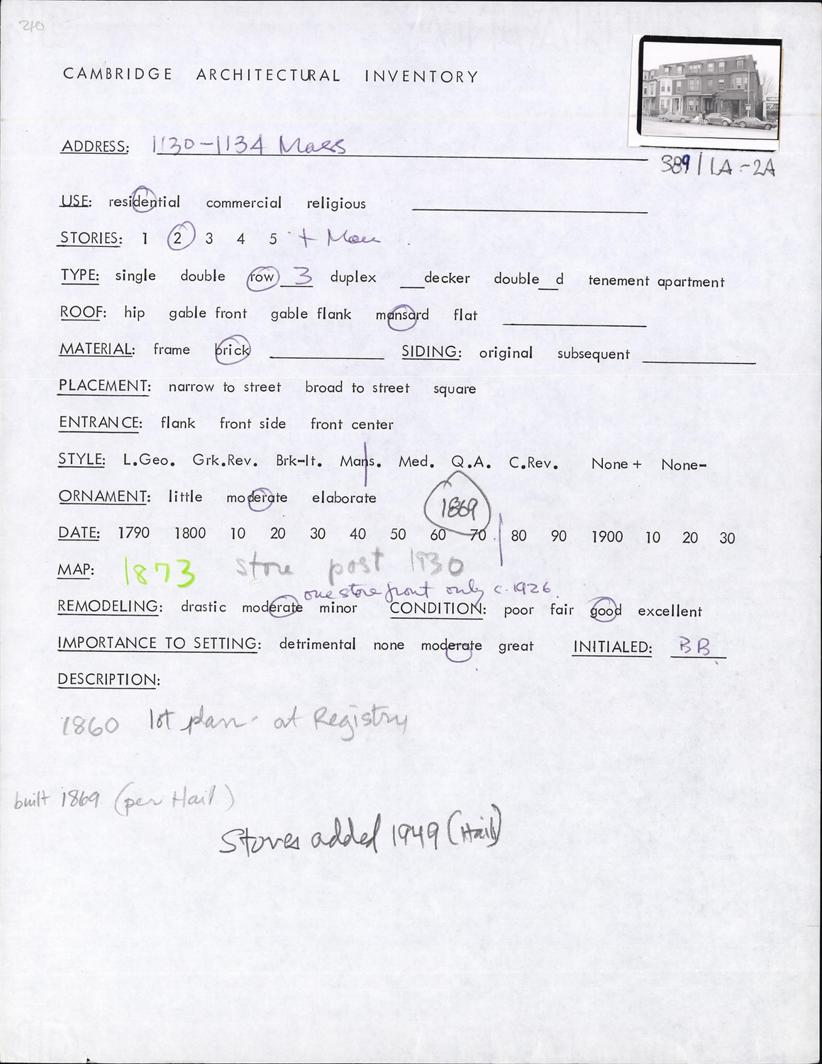 1130-1134 Massachusetts Ave - Architectural Inventory Form