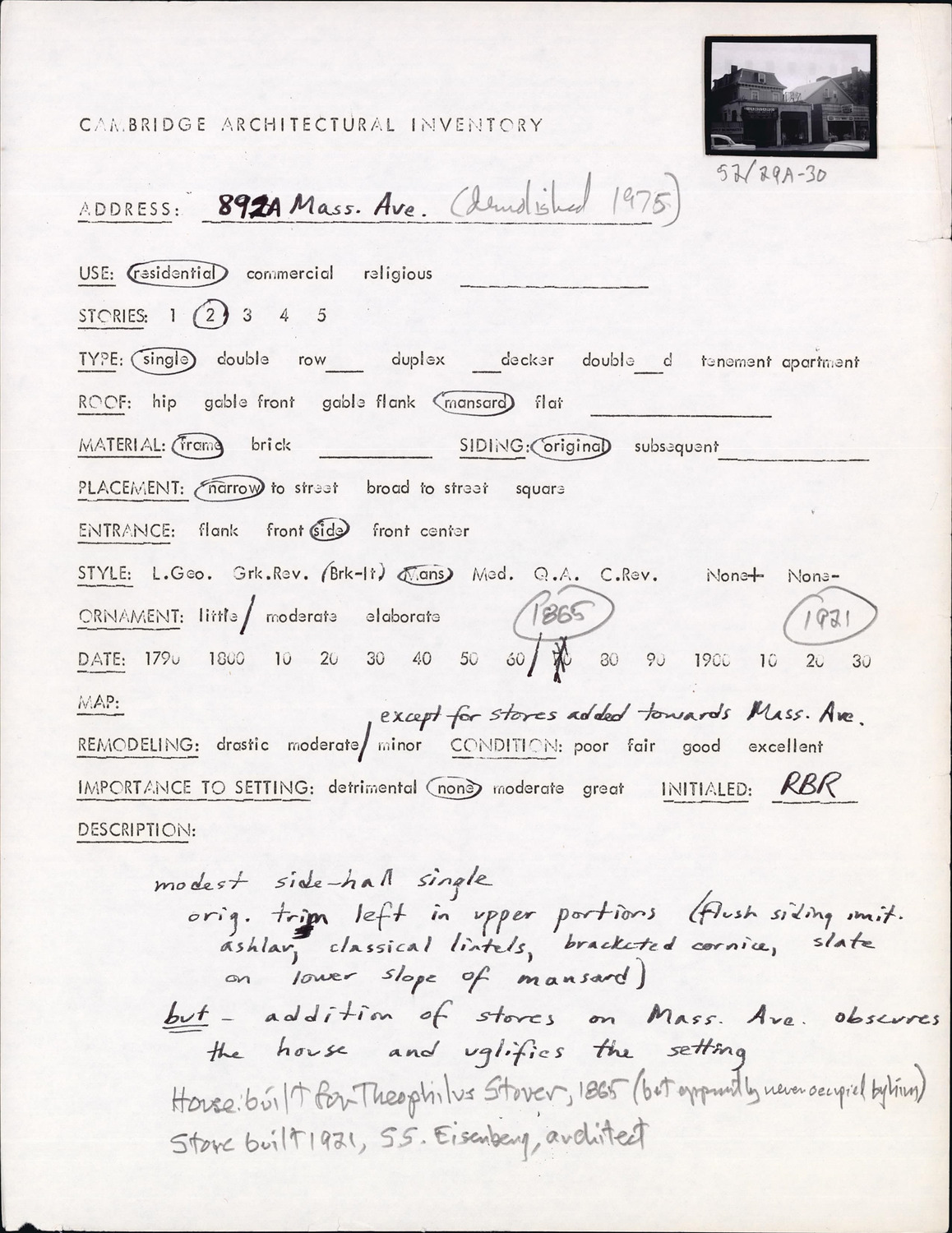 - Cambridge Historical Commission, Digital Architectural Survey and History.