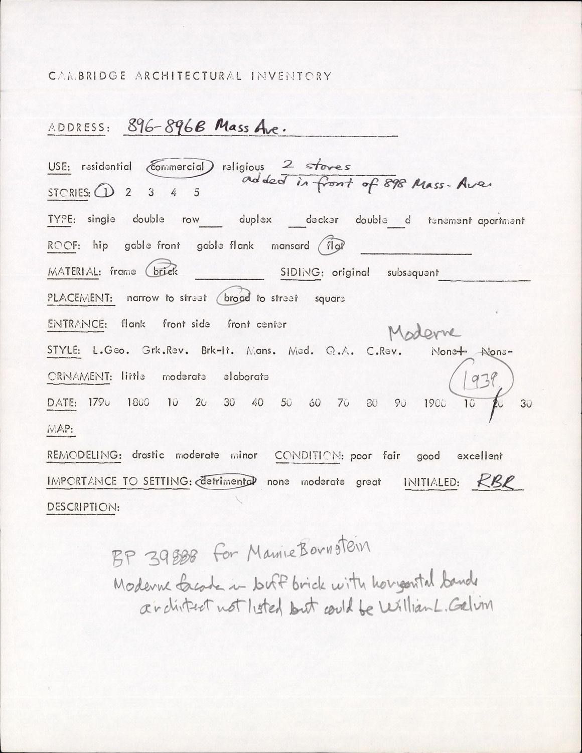 896-896B Massachusetts Ave - Architectural Inventory Form