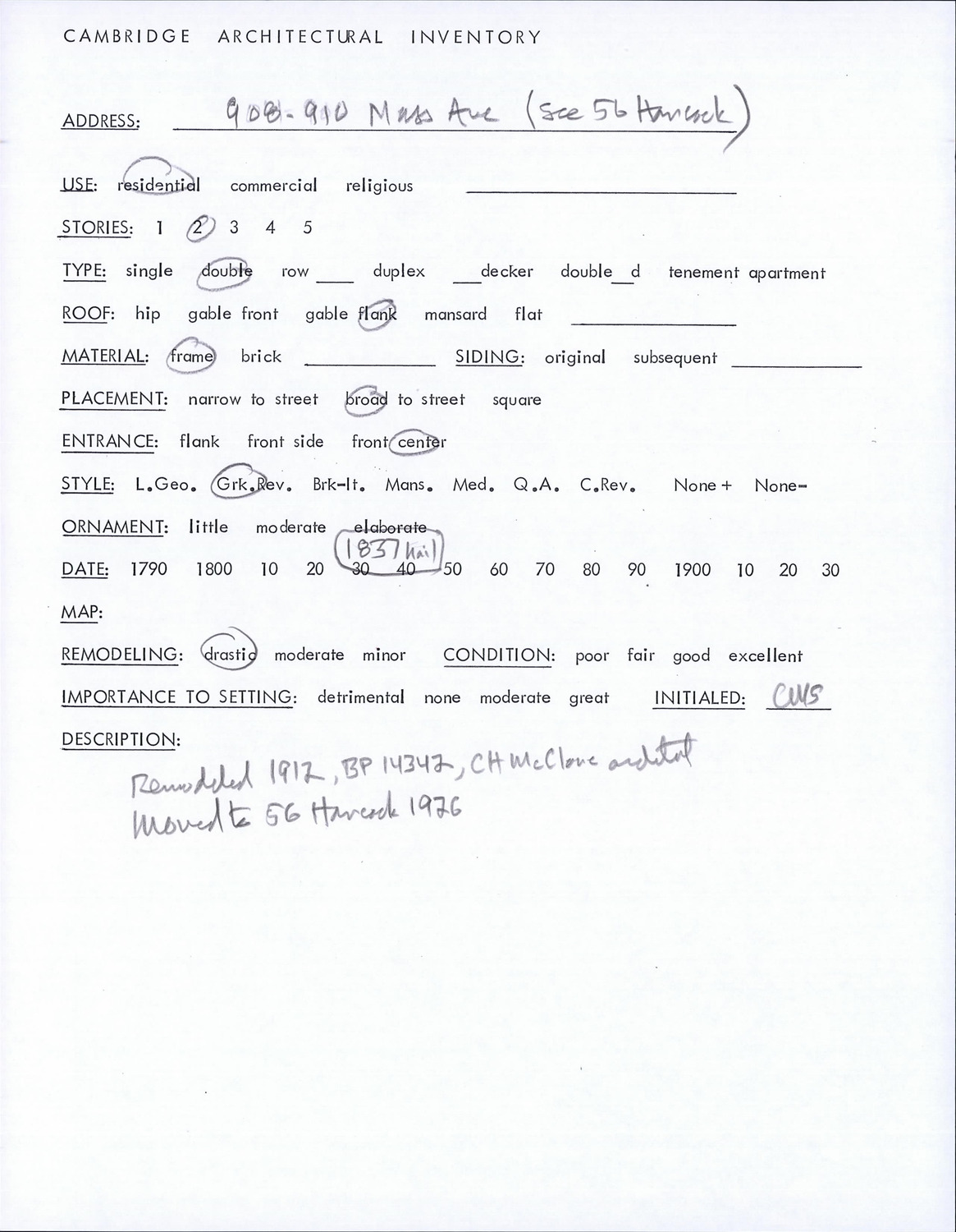 908-910 Massachusetts Ave - Architectural Inventory Form