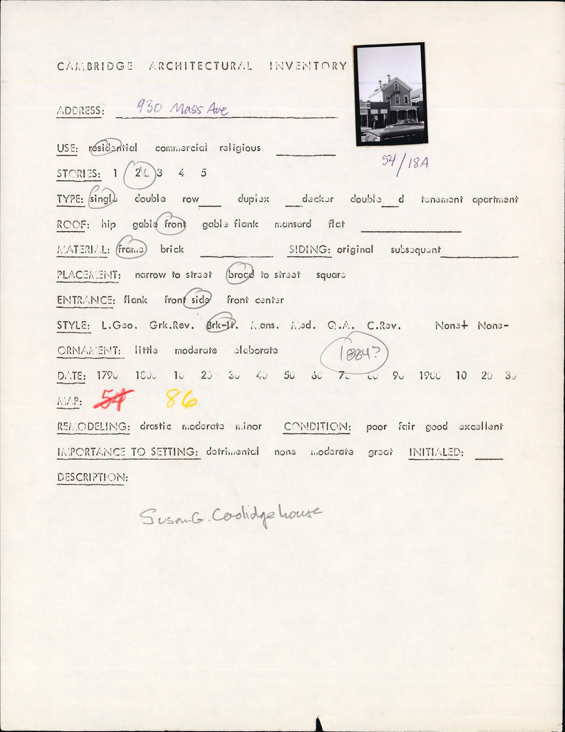 - Cambridge Historical Commission, Digital Architectural Survey and History.