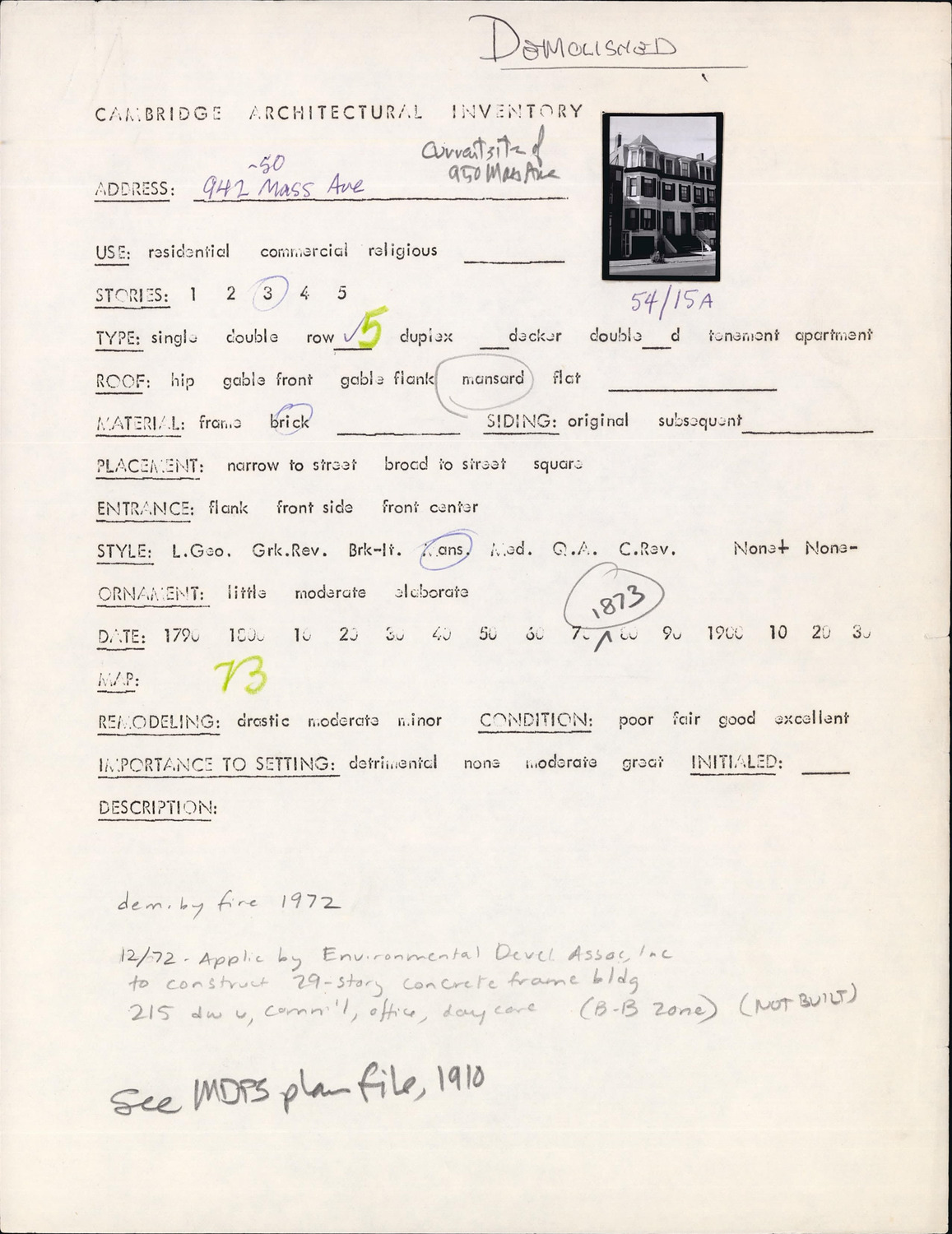 942-950 Massachusetts Ave - Architectural Inventory Form