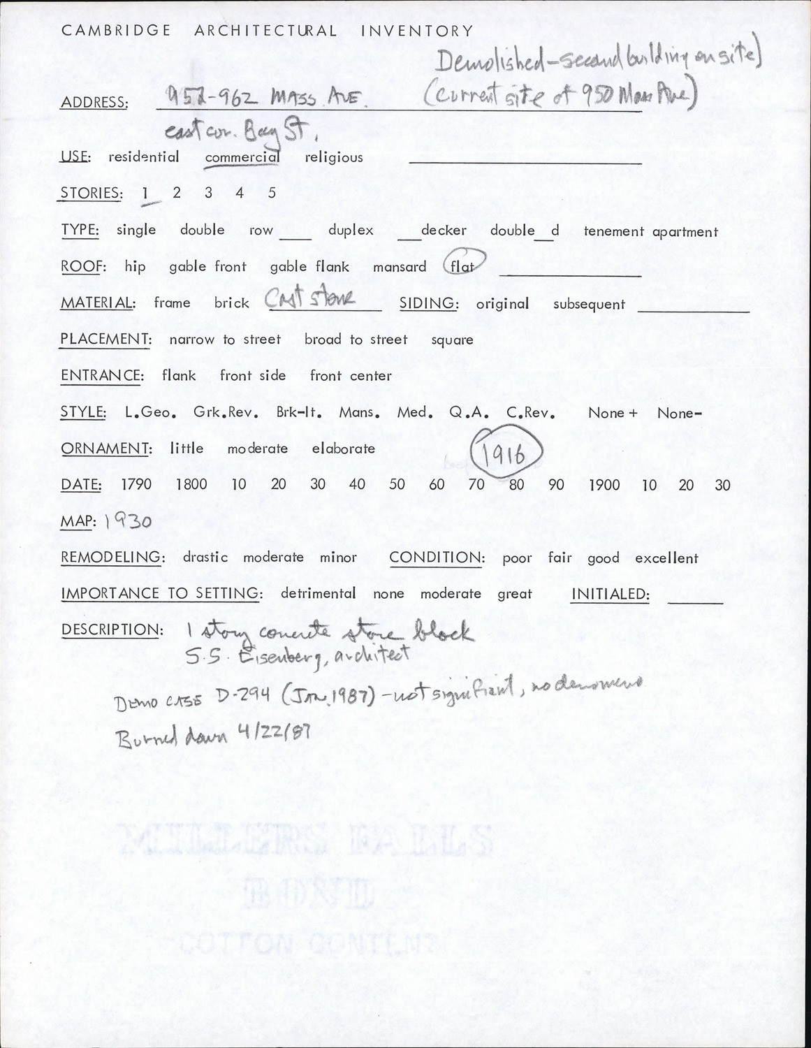 952-962 Massachusetts Ave - Architectural Inventory Form