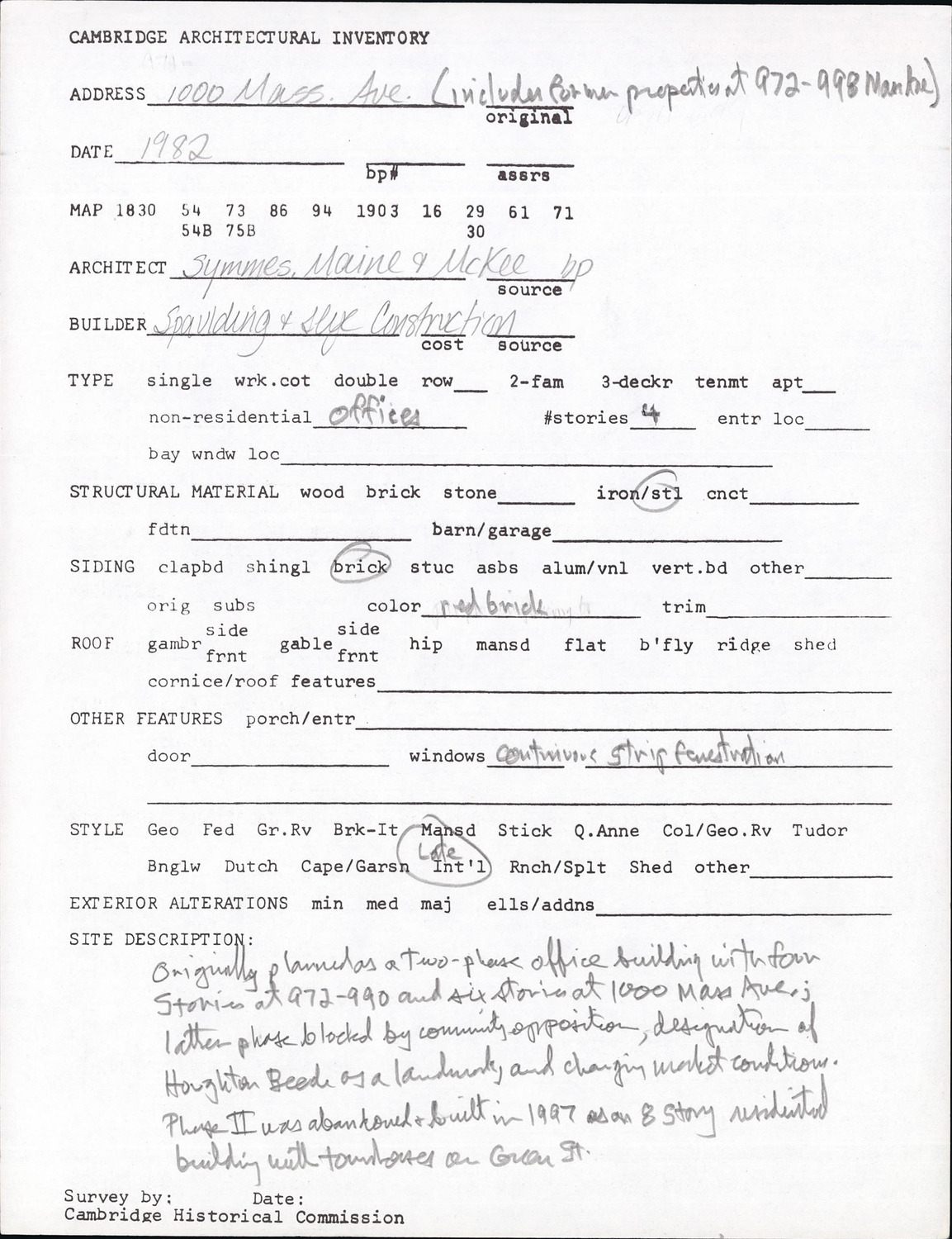 1000 Massachusetts Ave - Architectural Inventory Form