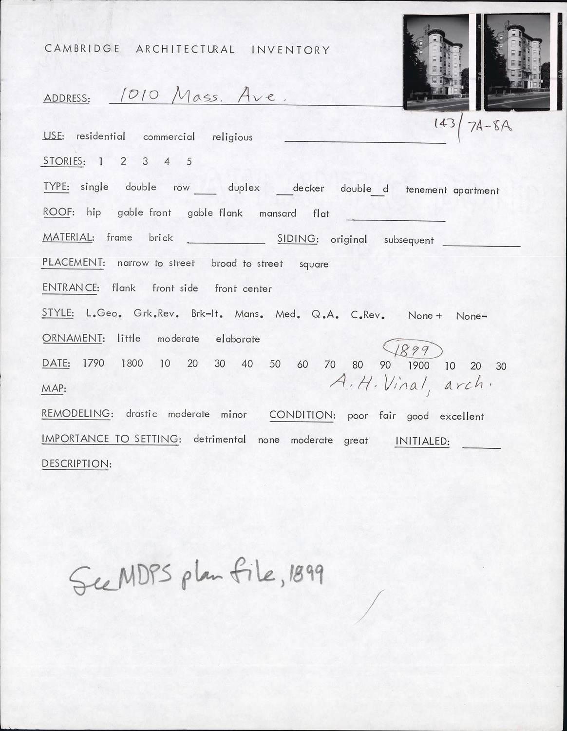 - Cambridge Historical Commission, Digital Architectural Survey and History.