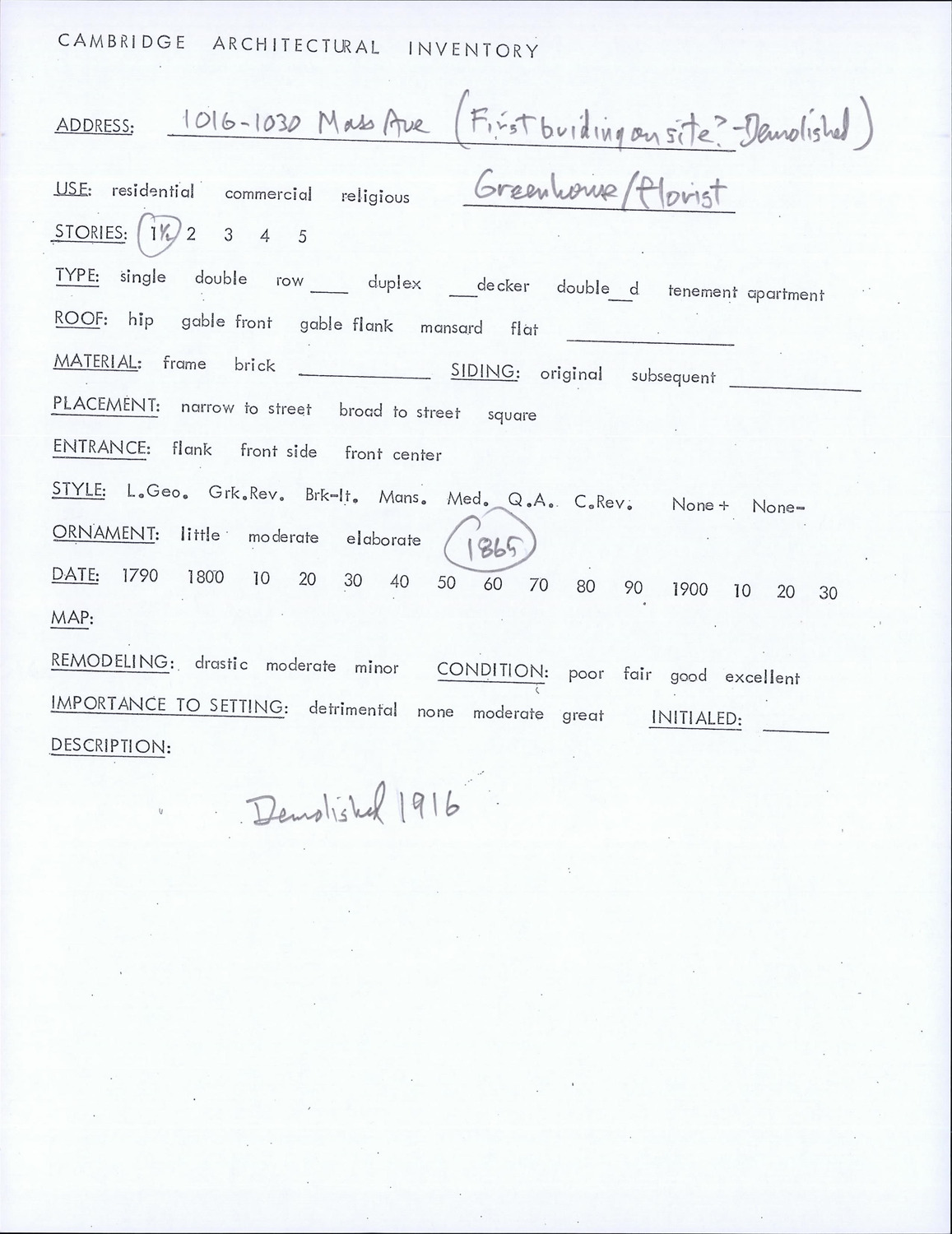 1016-1030 Massachusetts Ave - Architectural Inventory Form