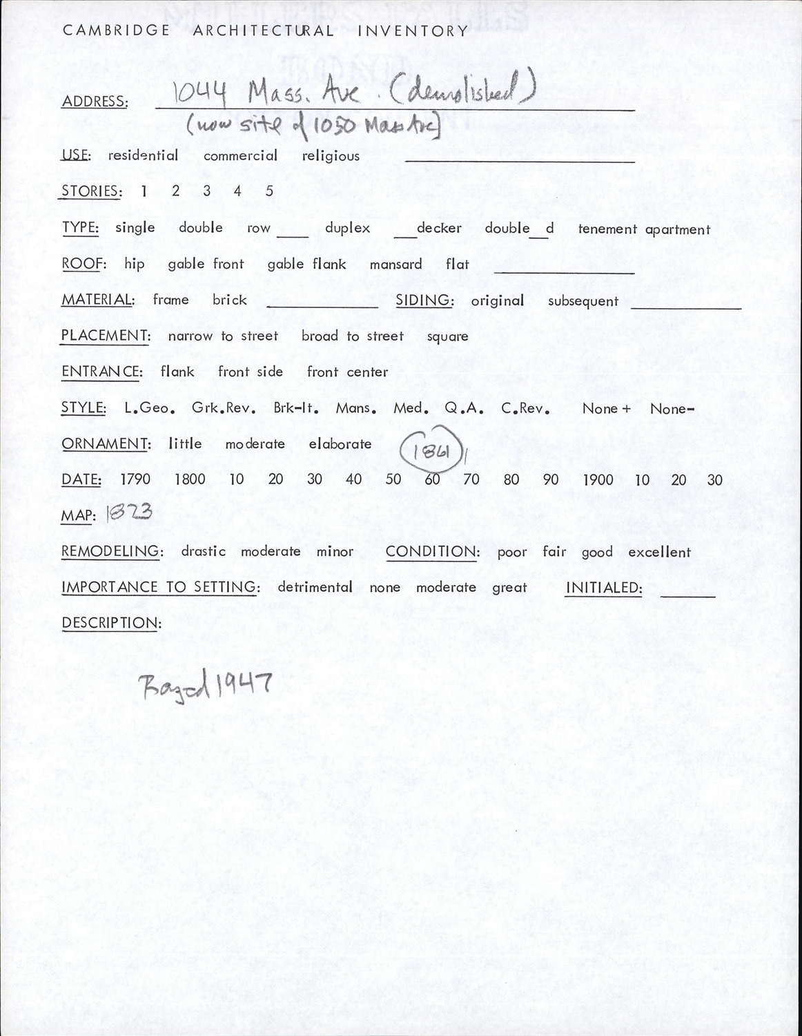 - Cambridge Historical Commission, Digital Architectural Survey and History.