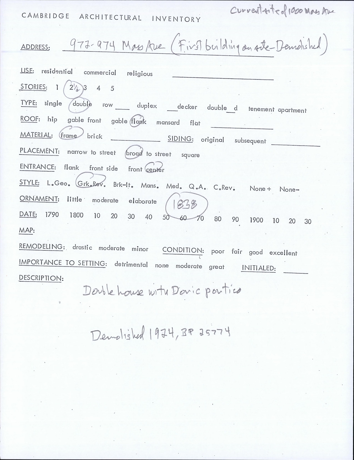 972-974 Massachusetts Ave - Architectural Inventory Form
