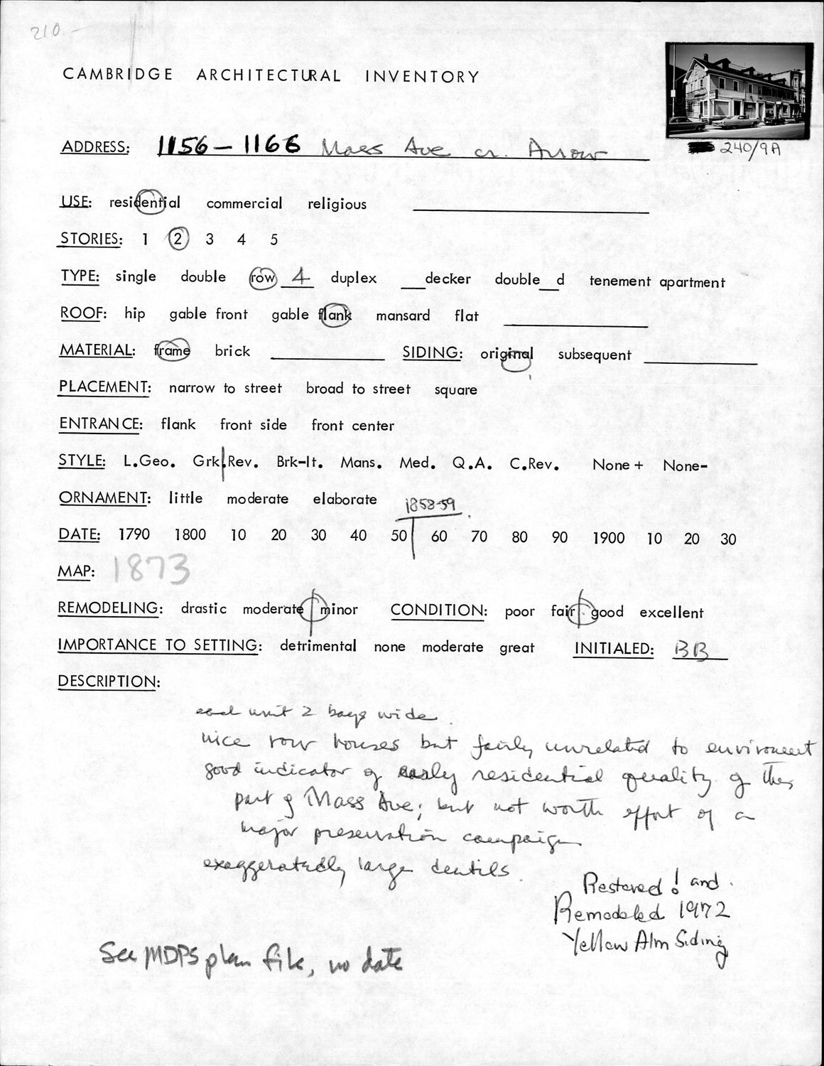 1156-1166 Massachusetts Ave - Architectural Inventory Form