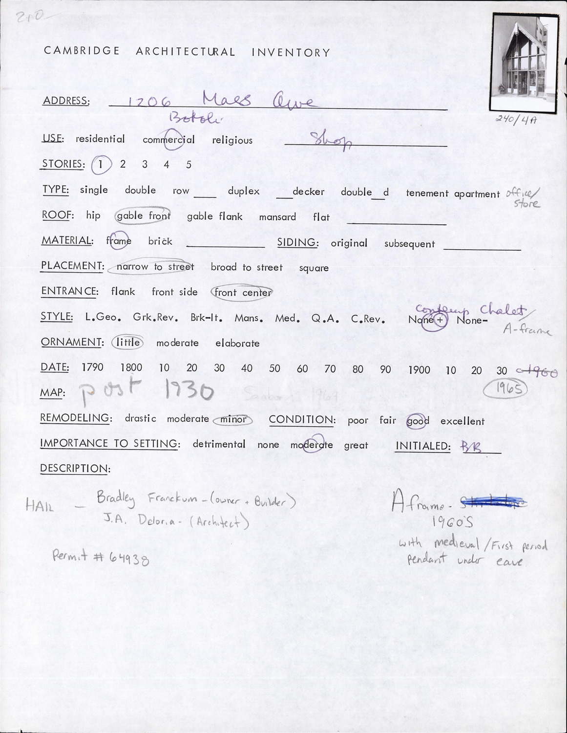 1206 Massachusetts Ave - Architectural Inventory Form