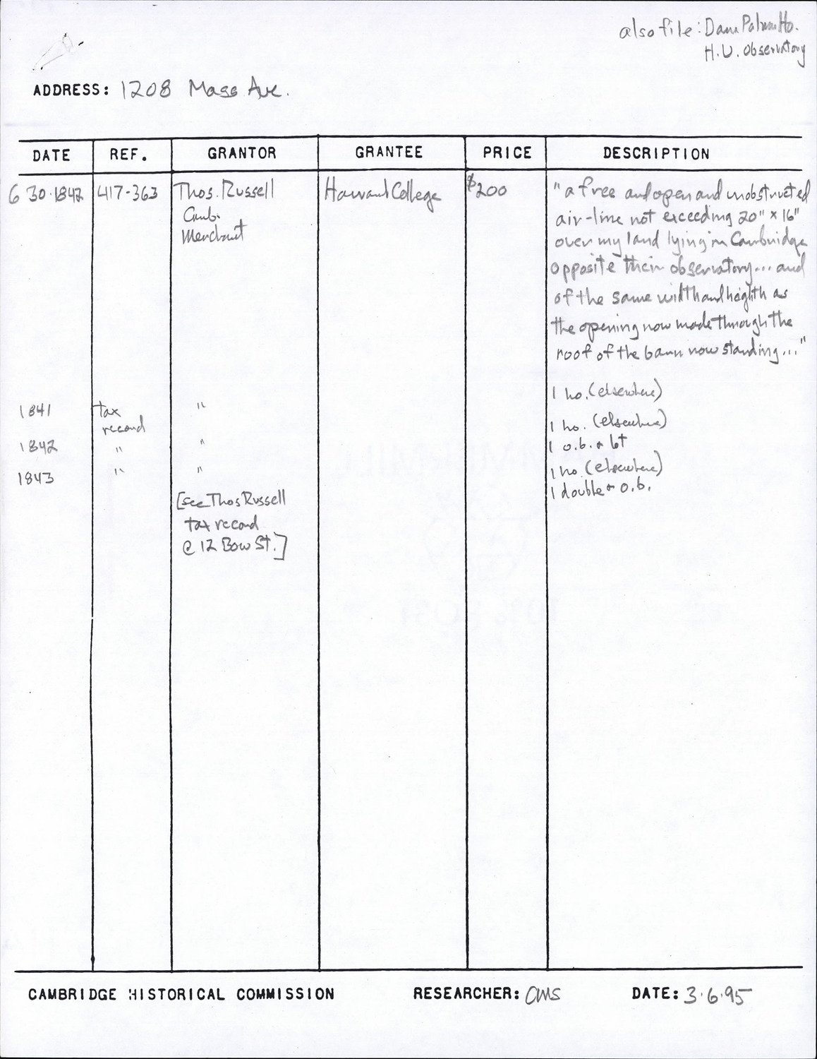 1208 Massachusetts Ave - Research Form