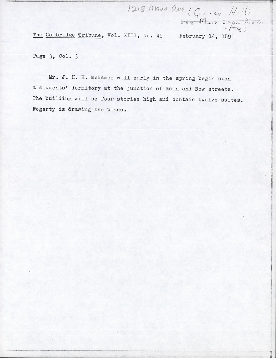 1218 Massachusetts Ave - Published Material