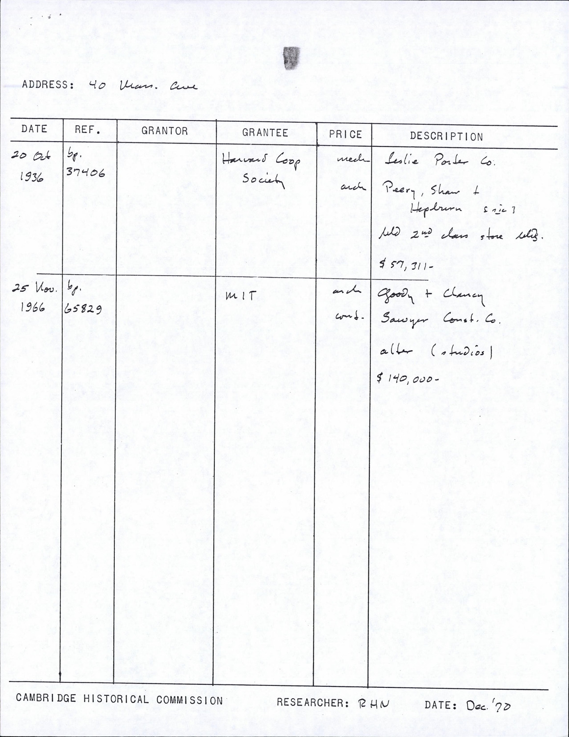 - Cambridge Historical Commission, Digital Architectural Survey and History.