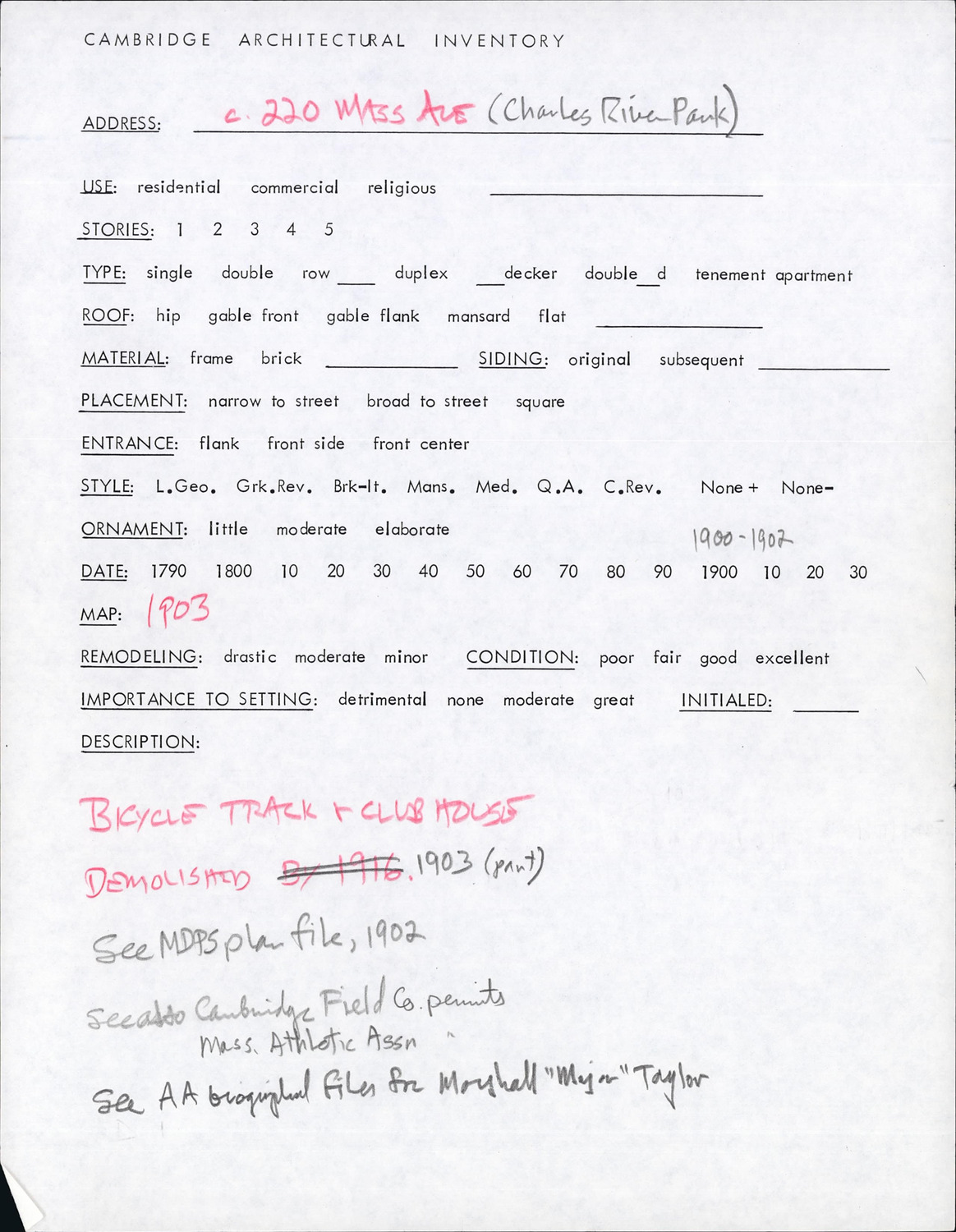 - Cambridge Historical Commission, Digital Architectural Survey and History.