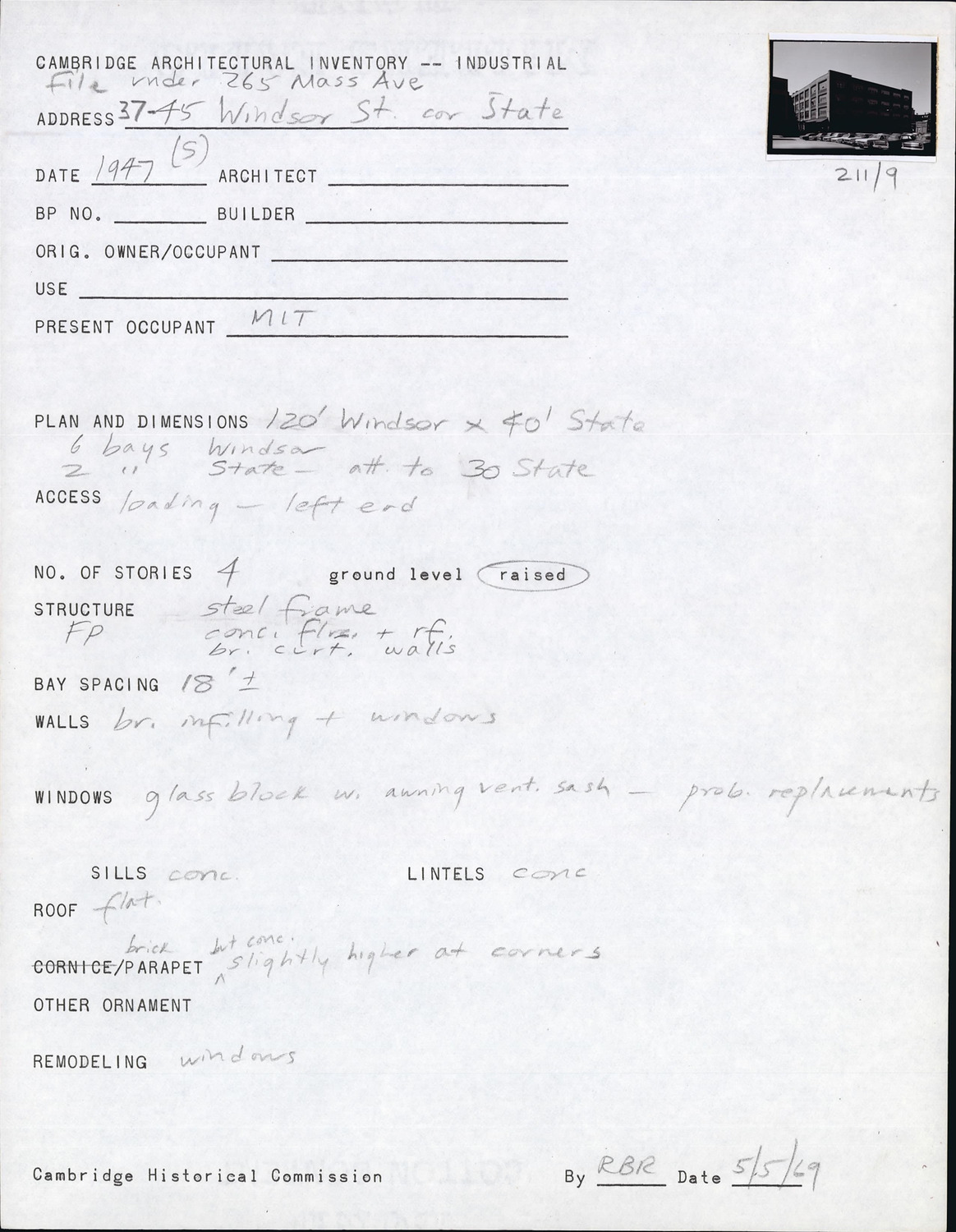 265 Massachusetts Ave - Architectural Inventory Form