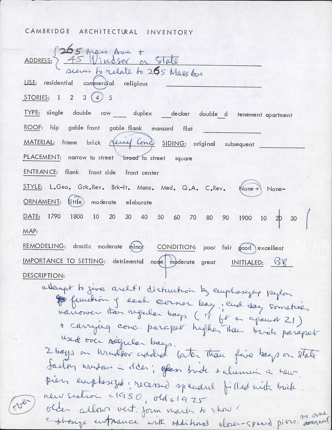 265 Massachusetts Ave - Architectural Inventory Form