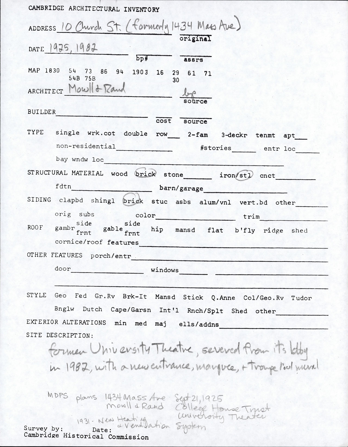 10 Church St - Architectural Inventory Form