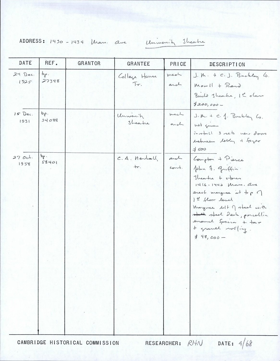 - Cambridge Historical Commission, Digital Architectural Survey and History.