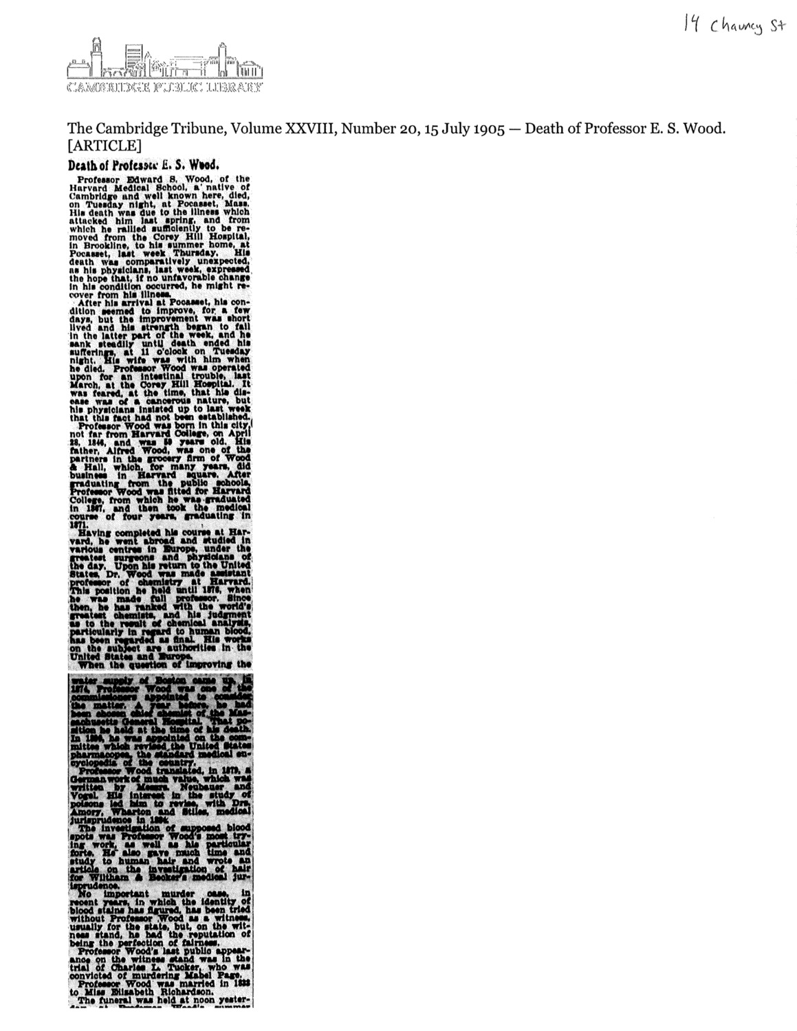 14 Chauncy St - Published Material