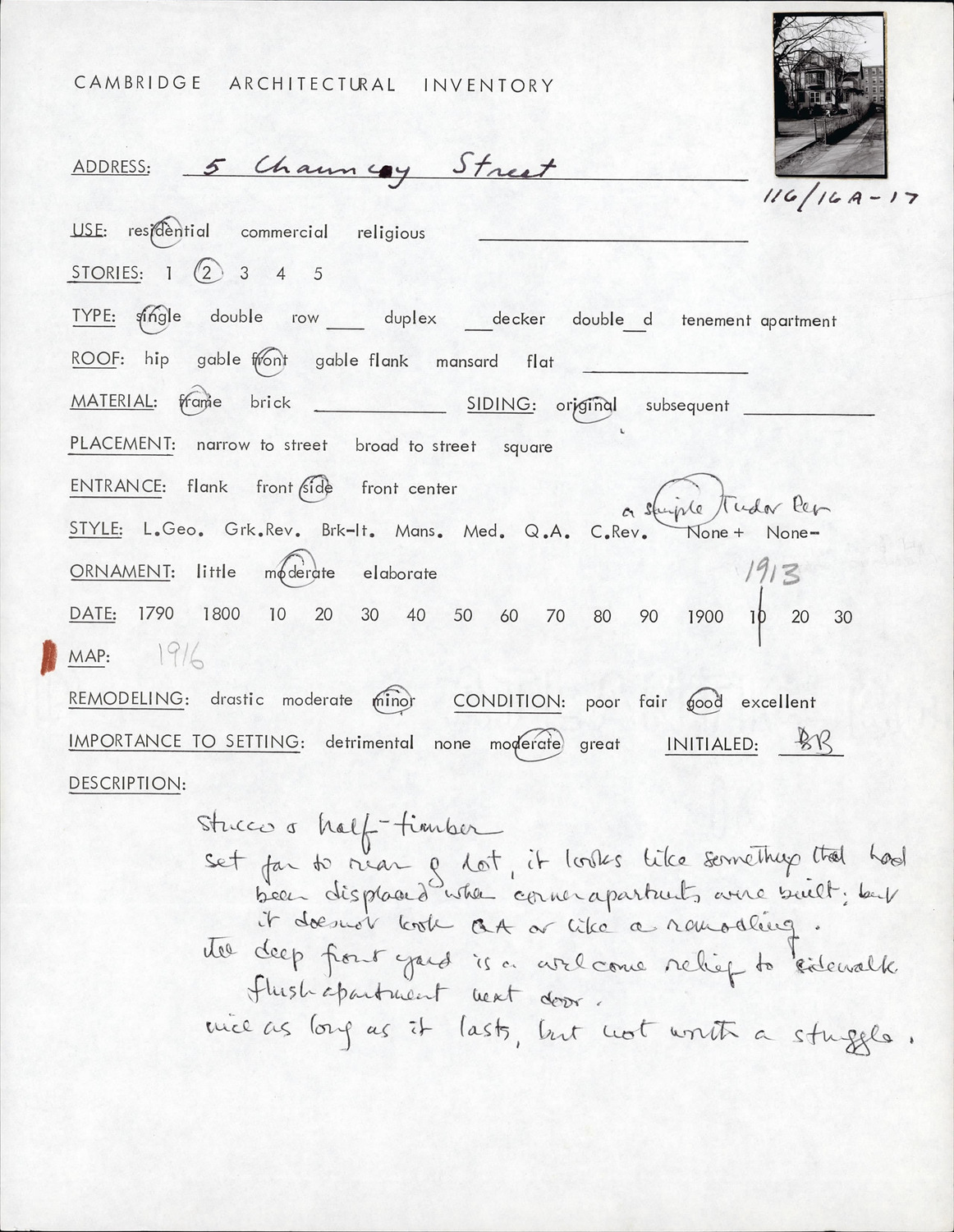 5 Chauncy St - Architectural Inventory Form